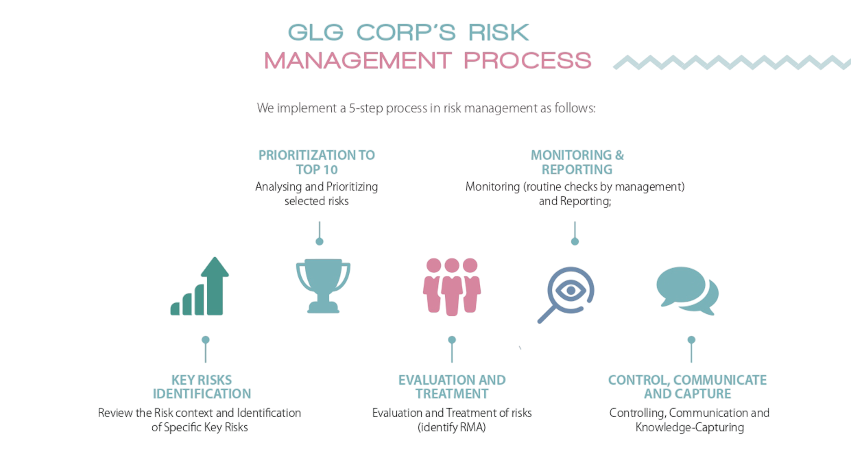 Risk is an inherent part of GLG Crop’s business, which operates in a highly competitive market sector. GLG Corp is committed to the management of risk as an integral part of its business, focusing on strategies to minimize risk which are regarded as threats to its achievements of objectives and goals. Read more about our Risk Management Policy here